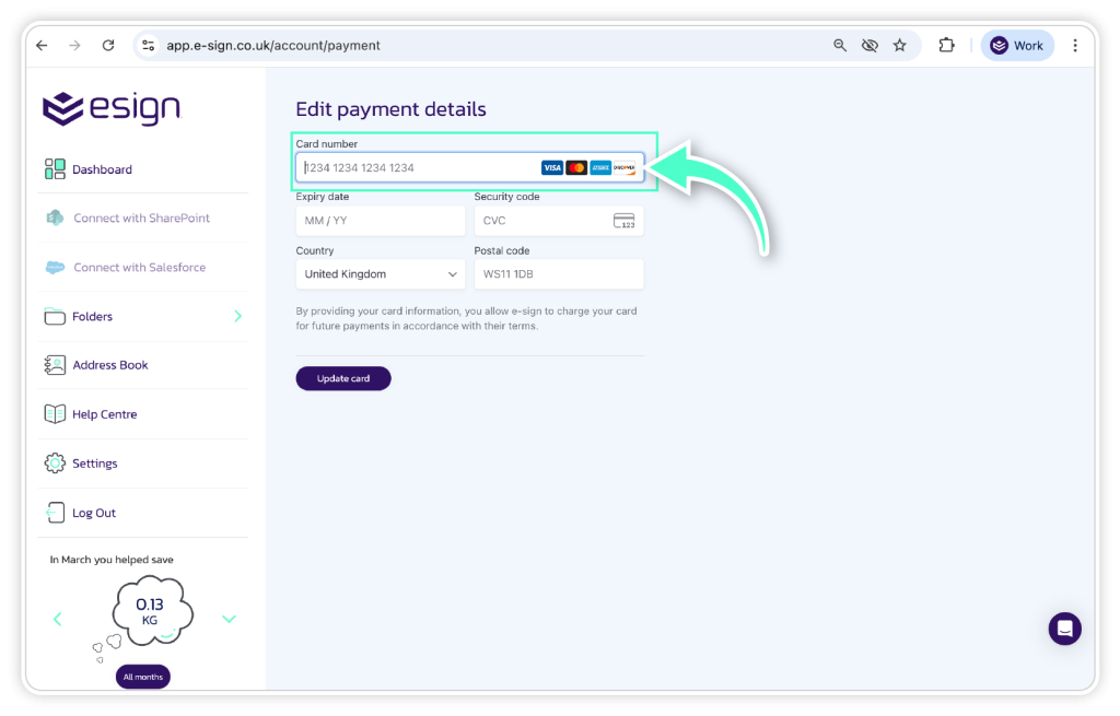 Once the payment details have been entered, you will be charged for the amount shown on the new plan you have selected.