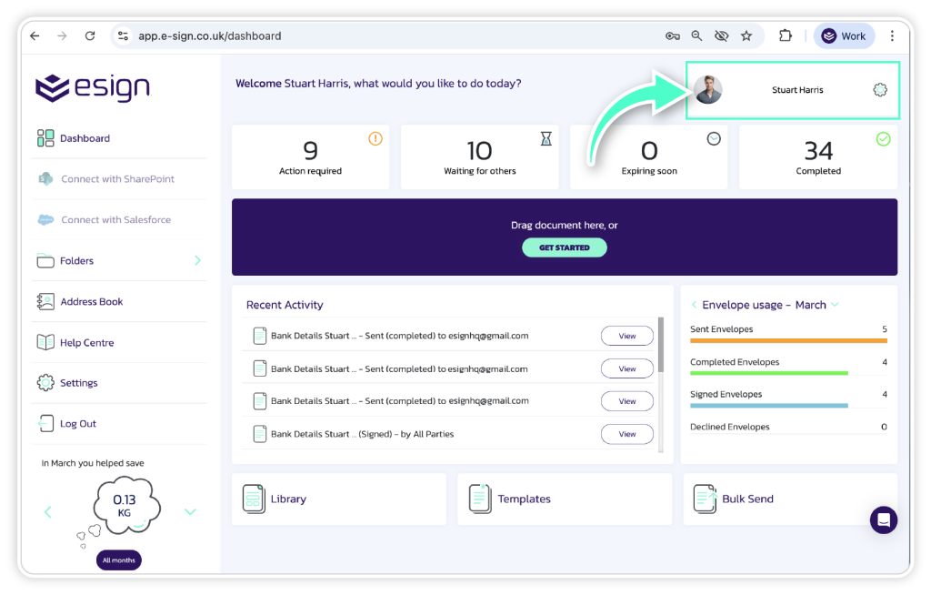 Please navigate to the account settings in your eSign dashboard.