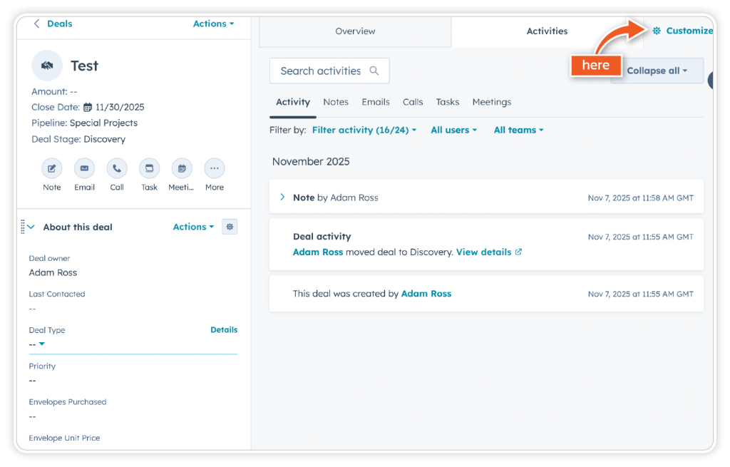 Once you have installed the eSign plugin from the Marketplace, access any deal in your dashboard and click on ‘Customise’.